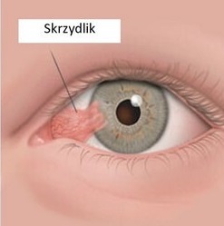 Skrzydlik jest zmianą chorobową oka, charakteryzującą się zgrubieniem spojówki. Nazwa wywodzi się ze starożytnej Grecji, pochodzi od słowa ,,pteryx” oznaczającego skrzydło. Skrzydlik jest zmianą degeneracyjną, polegającą na wrastaniu tkanki włóknisto – naczyniowej, będącej częścią spojówki, w rogówkę. Prowadzi to do powstania zmiany, przypominającej kształtem skrzydło owada. Patogeneza skrzydlika nie została do końca poznana, jednak do jego powstania może przyczyniać się ekspozycja na promieniowanie UV oraz podrażnienie przez suche, zapylone powietrze. Do rozwoju choroby może przyczyniać się także miejscowa niewydolność rąbkowych komórek macierzystych rogówki. Mały skrzydlik może nie wywoływać subiektywnych objawów, jednak w miarę wrastania w rogówkę dochodzić może do takich objawów jak: światłowstręt, łzawienie i uczucie ciała obcego pod powieką. Zaawansowane stadium choroby może powodować lokalne zniekształcenie rogówki, a w konsekwencji astygmatyzm, pogorszenie ostrości wzroku lub nawet dwojenie jednooczne.